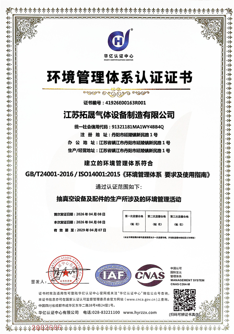 环境管理体系认证证书